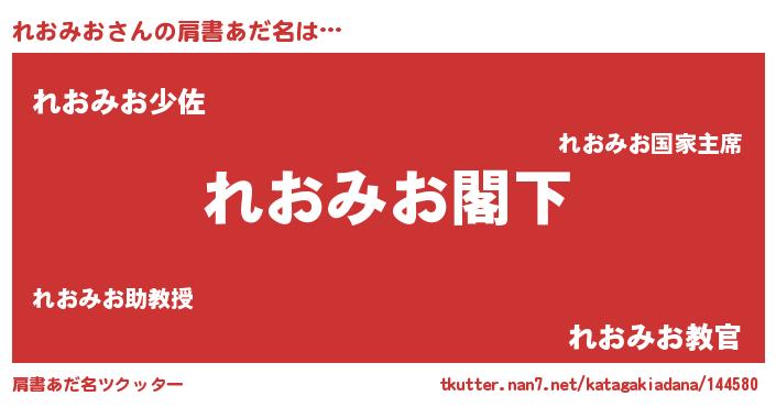 | 意味不明あだ名 | 『自称れおみお』『たけのこ科れおみお属』 |