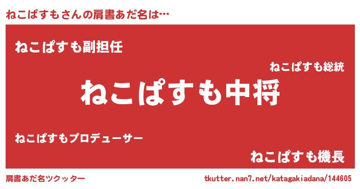 | ヘコむあだ名 | 『ねこぱすも(震え声)』『ねこっちょ』 |