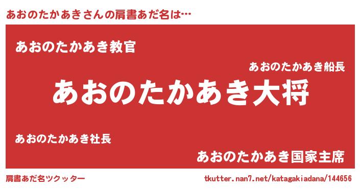 | 意味不明あだ名 | 『めかぶ科あおのたかあき属』 |