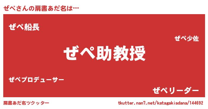 | 男性向けラノベタイトル風あだ名 | 『ノーゲーム・ノーゼペ』『緋弾のゼペ』 |