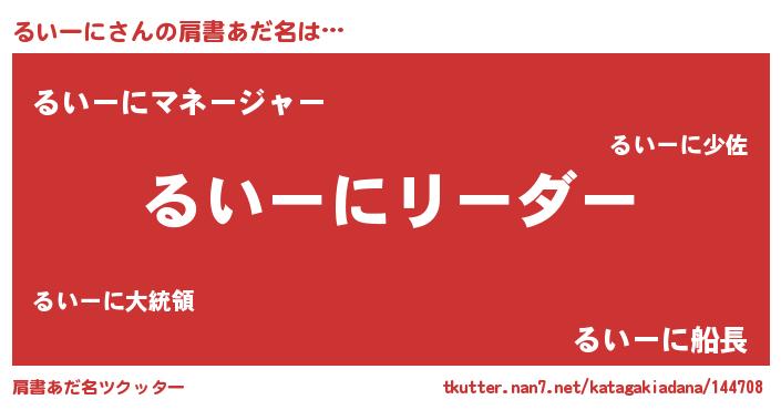 | ヘコむあだ名 | 『るいっちょ』『なまこ酢』 |