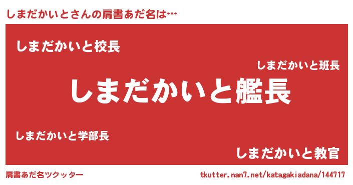 | 胡散臭い通販商品みたいなあだ名 | 『来世でも幸せになれる健康食品…その名も「しまだかいと」』 |