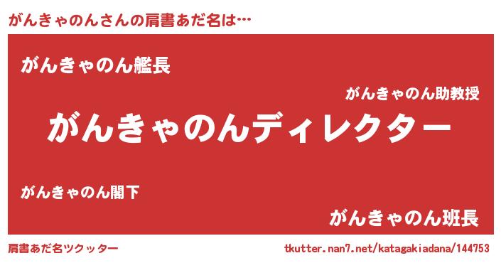| ヒーロー風カッコイイあだ名 | 『黄金騎士ガン』『愛の使者がんきゃのん』 |