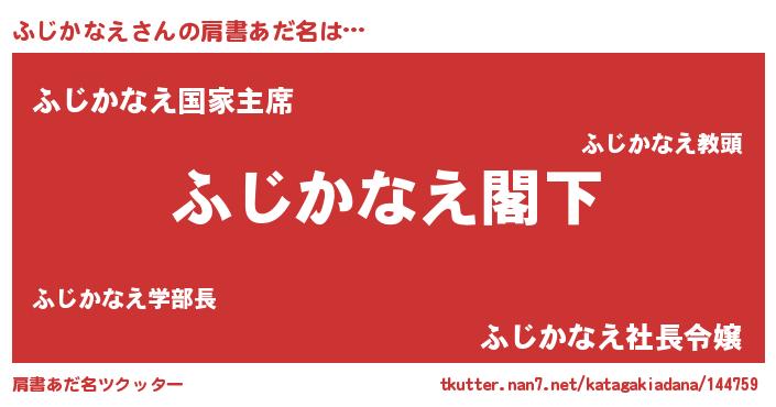 | 男性向けラノベタイトル風あだ名 | 『Re:ふじかなえから始める異世界生活』 |