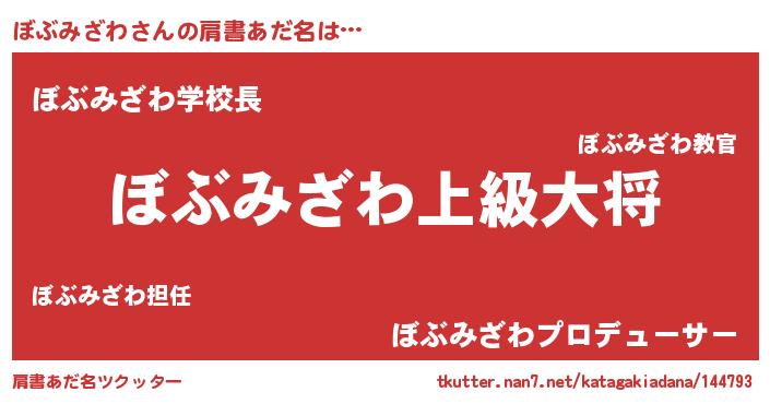 意味不明あだ名 | 『ニラ科ぼぶみざわ属』『自称ぼぶみざわ』 |