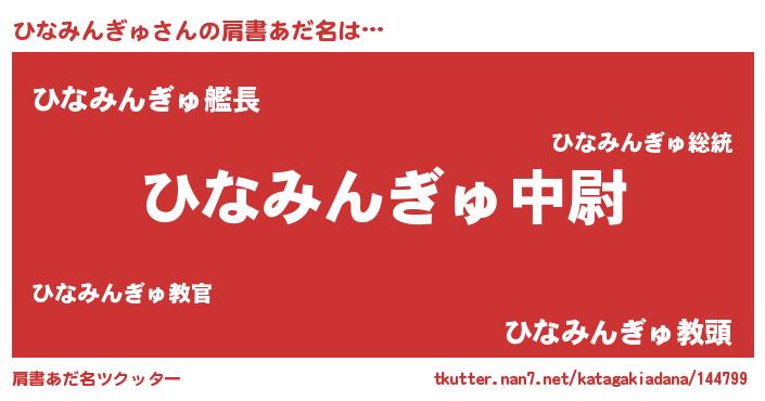 | 男性向けラノベタイトル風あだ名 | 『ヒナミンギュスレイヤー』 |