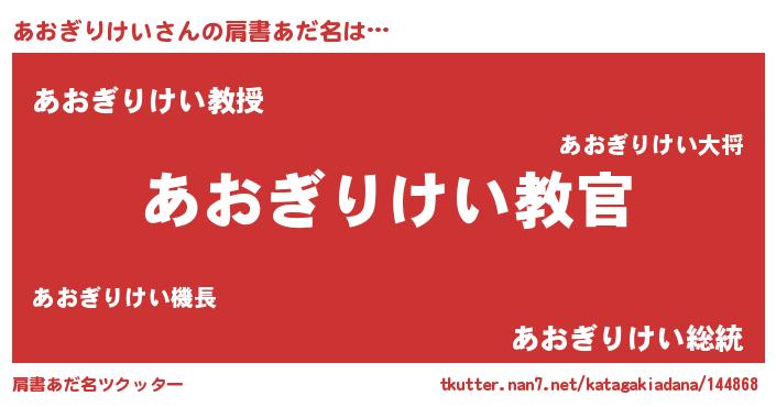 | 意味不明あだ名 | 『住所不定無職あおぎりけい(41歳)』 |