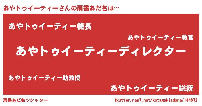 | 意味不明あだ名 | 『自称あやトゥイーティー』 |