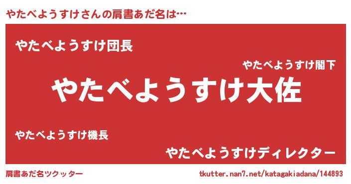| ポケモン風あだ名 | 『ヤタキング』『ヒヤタベヨウスケ』 |