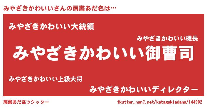 | 男性向けラノベタイトル風あだ名 | 『みやざきかわいいの憂鬱』 |