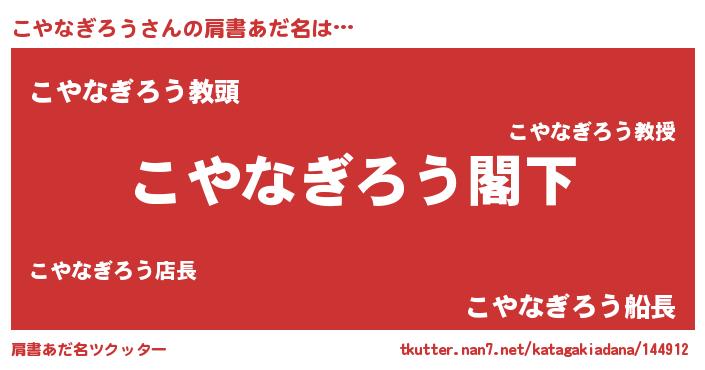 | 意味不明あだ名 | 『自称こやなぎろう』 |