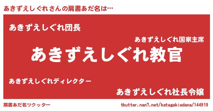 | 意味不明あだ名 | 『住所不定無職あきずえしぐれ(50歳)』 |