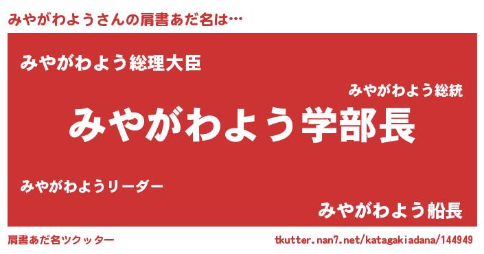 | ピコ太郎風あだ名 | 『ミミ太郎』『ピミ次郎』『ミヤ三郎』 |