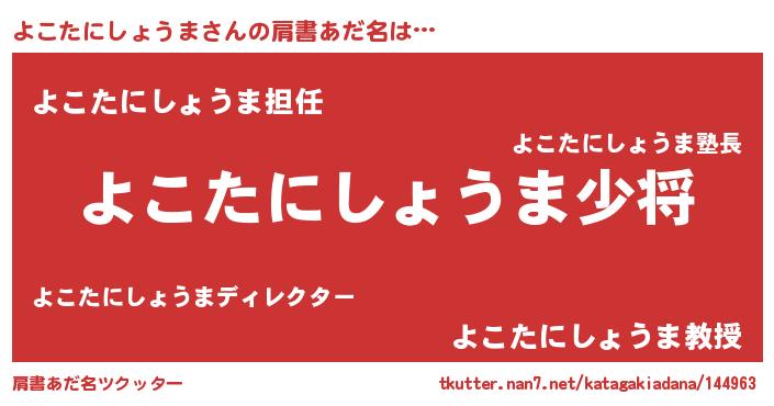 | 男性向けラノベタイトル風あだ名 | 『ヨコタニショウマスレイヤー』 |