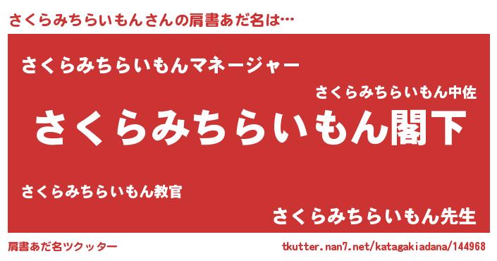 | 女子向けラノベタイトル風あだ名 | 『さくらみちらいもんなんてお断りですっ。』 |