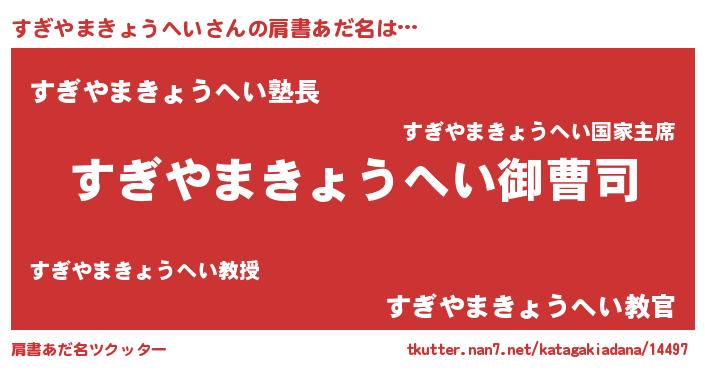 | ヒーロー風カッコイイあだ名 | 『スーパースギヤマキョウヘイ』 |