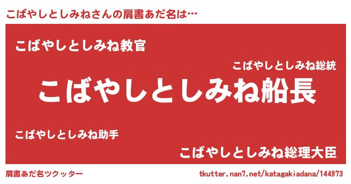 | 意味不明あだ名 | 『住所不定無職こばやしとしみね(13歳)』 |
