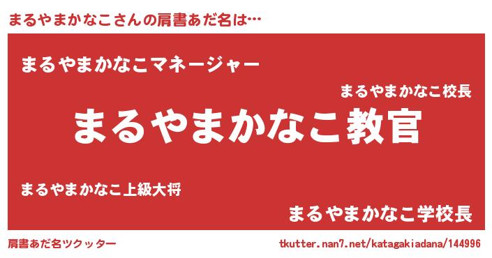 | 男性向けラノベタイトル風あだ名 | 『この素晴らしい世界にまるやまかなこを!』 |