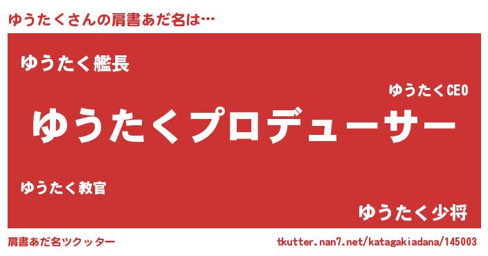 | 男性向けラノベタイトル風あだ名 | 『ゆうたくに滅ぼされるだけの簡単なお仕事です』 |