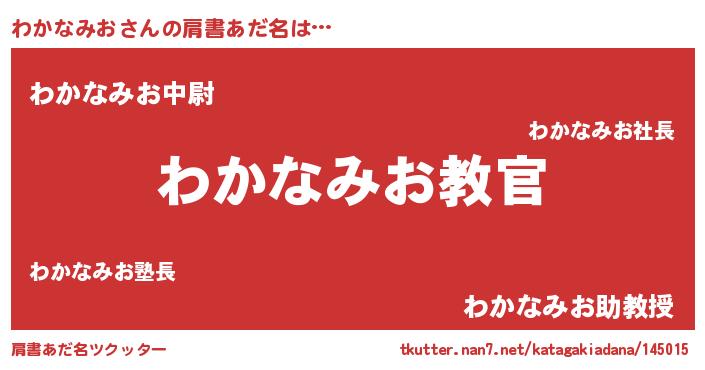 | 意味不明あだ名 | 『住所不定無職わかなみお(7歳)』 |