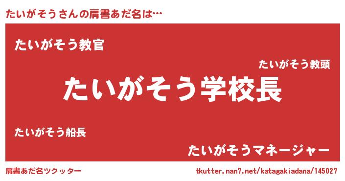| ヒーロー風カッコイイあだ名 | 『慈愛の使者たいがそう』『仮面タイダー』 |