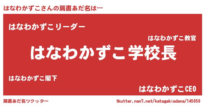 | 女子向けラノベタイトル風あだ名 | 『はなわかずこ恋絵巻』 |