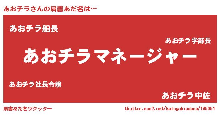| 欧米人風あだ名 | 『アンジェラ・あおチラ』 |