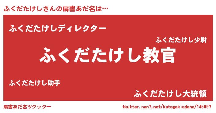 | 男性向けラノベタイトル風あだ名 | 『魔弾の王とふくだたけし』 |