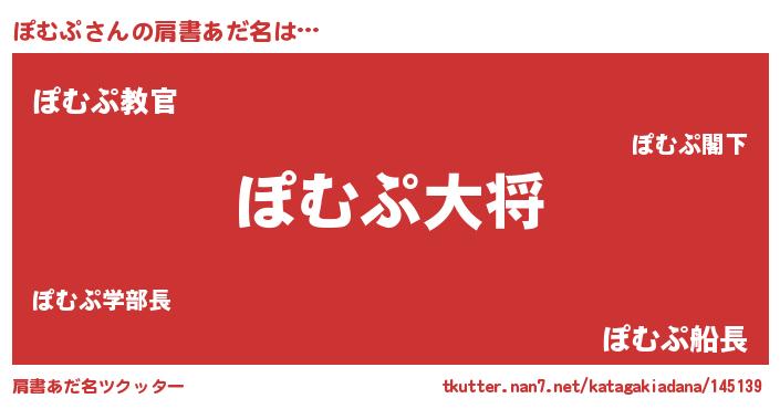 | 男性向けラノベタイトル風あだ名 | 『ぽむぷ~年齢イコール彼女いない歴の魔法使い~』 |