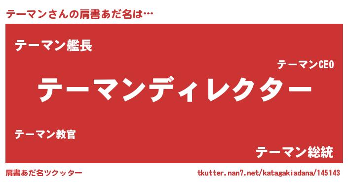 | ヒーロー風カッコイイあだ名 | 『ウルトラ戦士テーマン』『仮面テーダー』 |