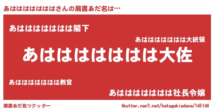 | 女子向けラノベタイトル風あだ名 | 『あはははははははの玉の輿計画!』 |