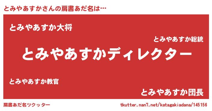 | 男性向けラノベタイトル風あだ名 | 『とみやあすかに滅ぼされるだけの簡単なお仕事です』 |