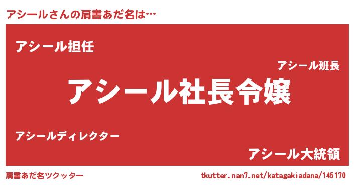 | ファンタジー風あだ名 | 『アシフェル』『アシディッシュ』 |