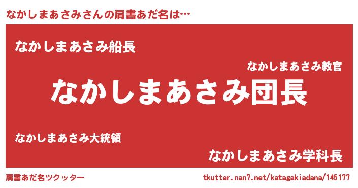 | 男性向けラノベタイトル風あだ名 | 『なかしまあさみの嫁は女の子じゃないと思った?』 |