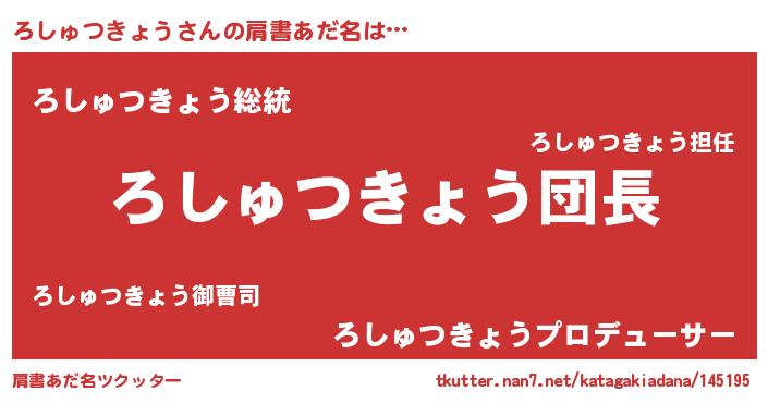 | ヘコむあだ名 | 『ろしお』『ろしゅつきょう(爆)』 |