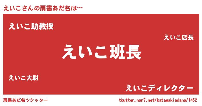 | ヒーロー風カッコイイあだ名 | 『魔戒騎士エイ』『正義の使者えいこ』 |