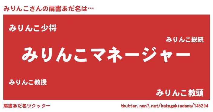 | ヘコむあだ名 | 『みりんこ(笑)』『みりっぺ』 |