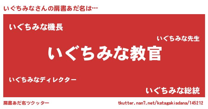 | ヘコむあだ名 | 『いぐちみな(小並感)』『いぐっぺ』 |