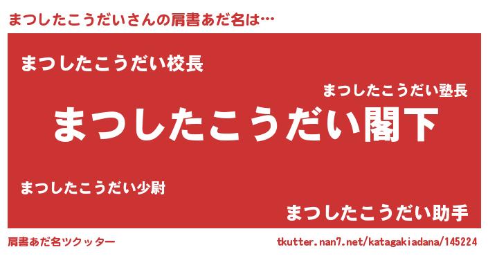 | 意味不明あだ名 | 『自称まつしたこうだい』 |
