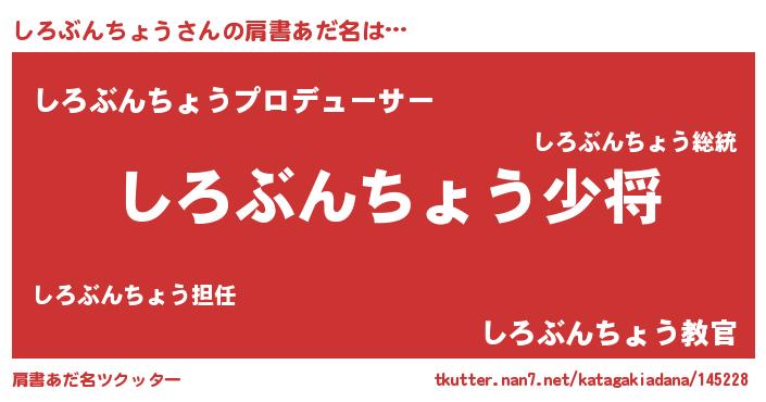 | 男性向けラノベタイトル風あだ名 | 『しろぶんちょう~年齢イコール彼女いない歴の魔法使い~』 |