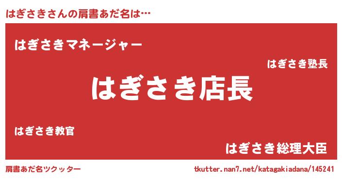 | 男性向けラノベタイトル風あだ名 | 『はぎさきの憂鬱』 |