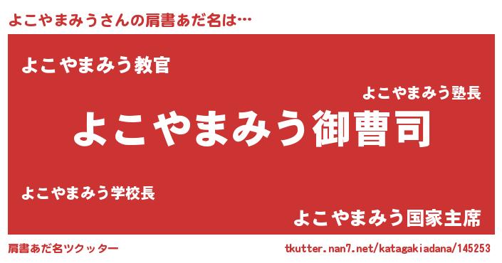 | ヒーロー風カッコイイあだ名 | 『スーパーヨコヤマミウ』『仮面ヨコダー』 |