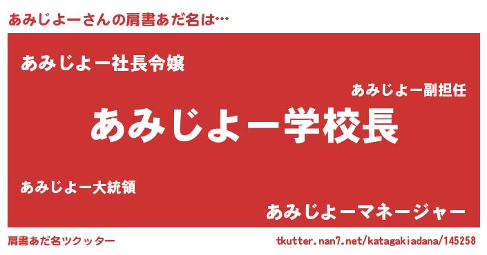 | ヒーロー風カッコイイあだ名 | 『天空の使者あみじよー』『仮面アミダー』 |
