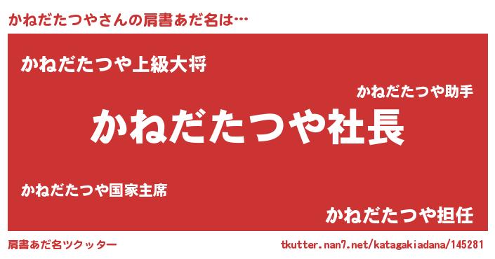 | 男性向けラノベタイトル風あだ名 | 『かねだたつやの憂鬱』 |