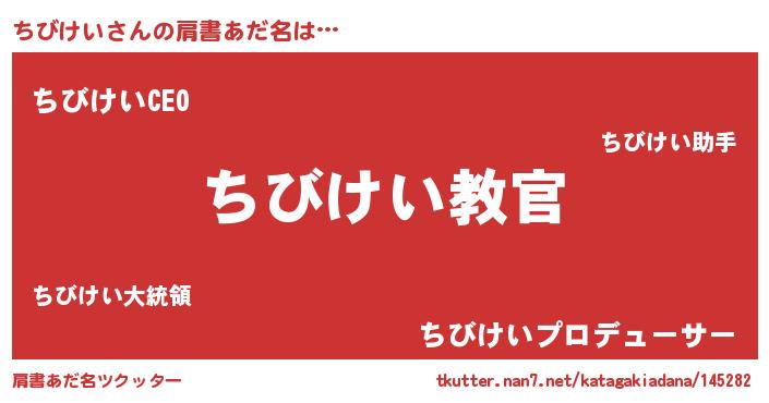 | 男性向けラノベタイトル風あだ名 | 『魔弾の王とちびけい』『ちびけいの憂鬱』 |