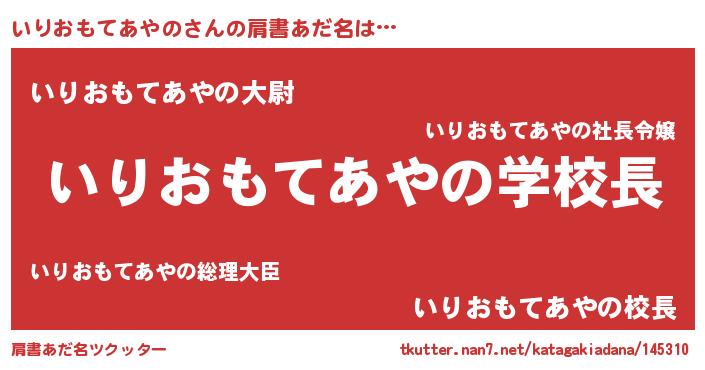 | 女子向けラノベタイトル風あだ名 | 『いりおもてあやの恋絵巻』 |