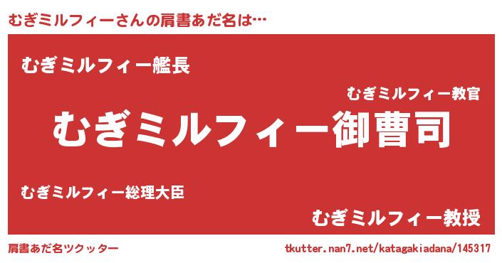 | 胡散臭い通販商品みたいなあだ名 | 『必ず成功する霊験あらたかなお札…その名も「むぎミルフィー」』 |