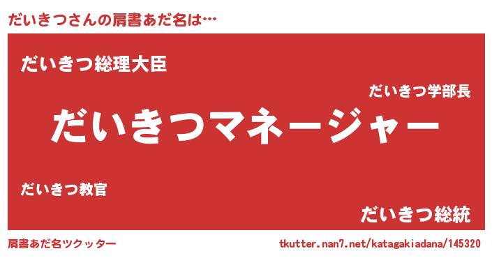 | 男性向けラノベタイトル風あだ名 | 『はたらくだいきつさま!』 |