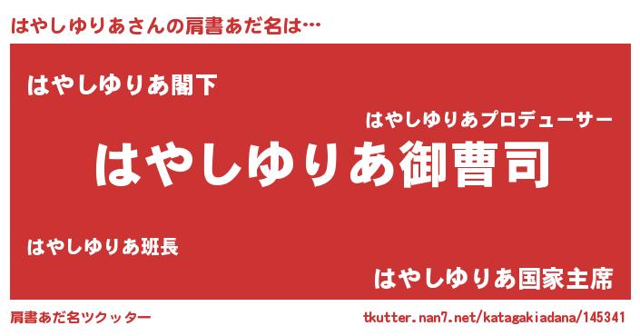| 女子向けラノベタイトル風あだ名 | 『(仮)はやしゆりあのやんごとなき事情』 |