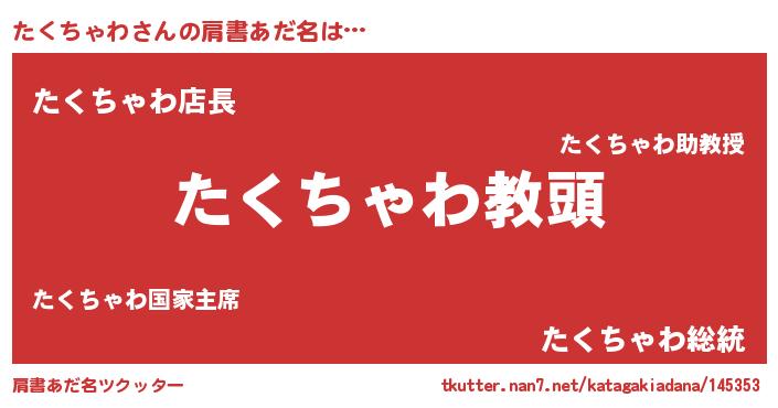 | 男性向けラノベタイトル風あだ名 | 『たくちゃわという概念が存在しない退屈な世界 』 |